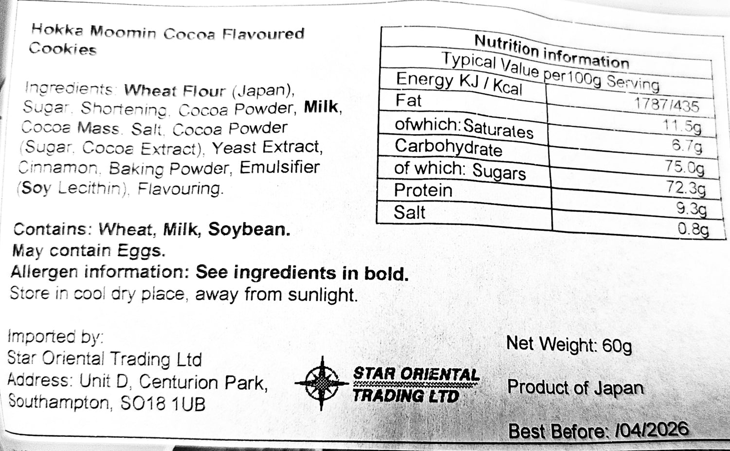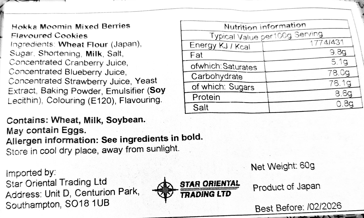 See photos for allergen and nutritional info