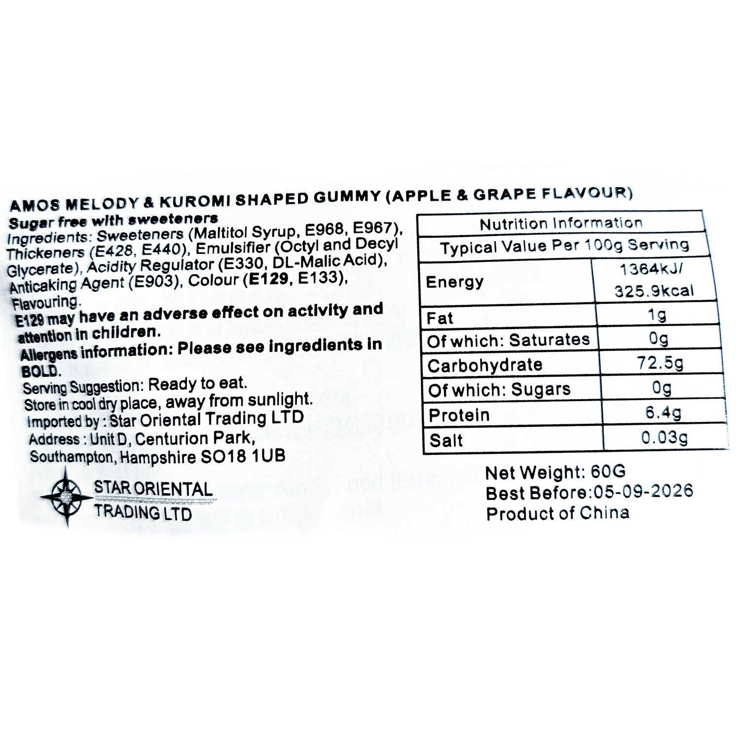 Adorable apple and grape flavoured gummies shaped like our favourite Sanrio frenemies My Melody & Kuromi!