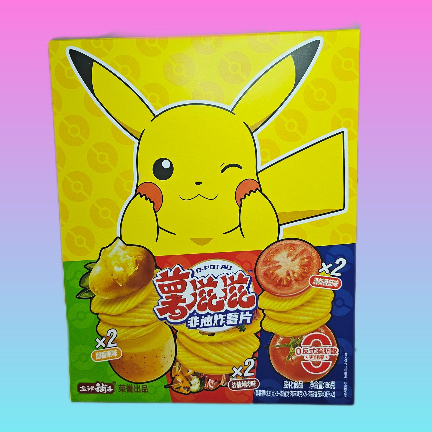 6 Packs of Pokémon stacking potato crisps in Pikachu box.