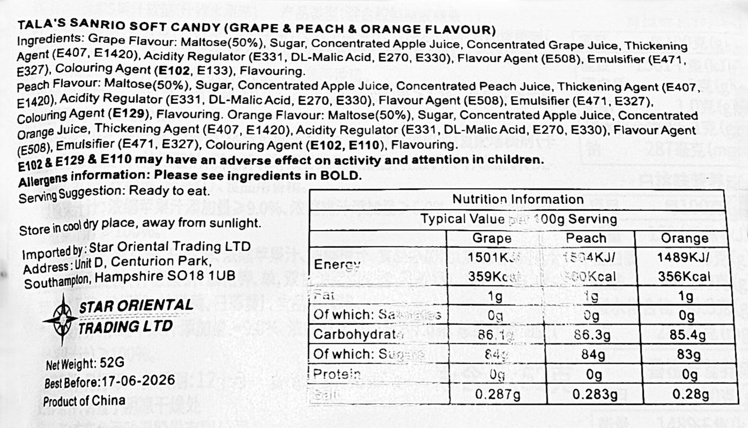See photos for allergen and nutritional information